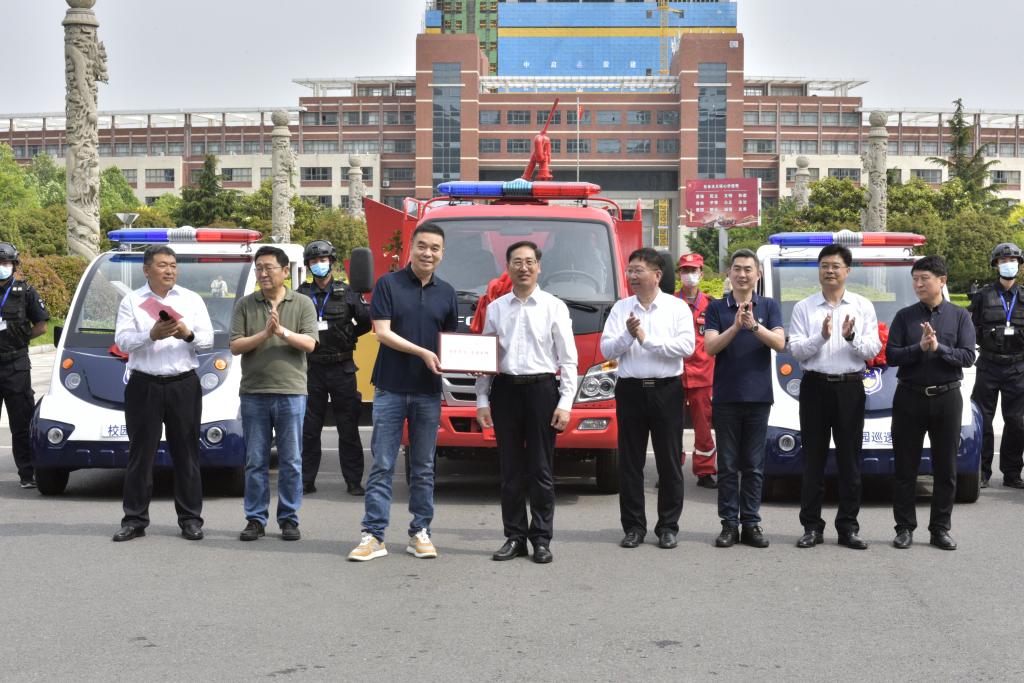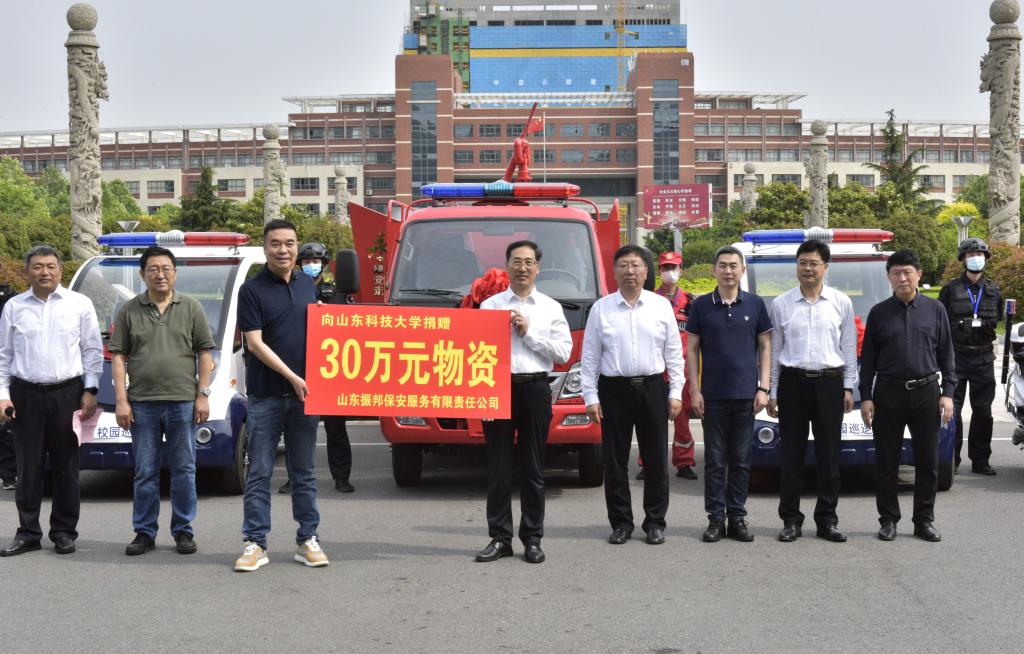 6月1日,在beat365官方网站70周年华诞之际,山东振邦保安服务有限责任公司向学校捐赠校园巡逻车、消防车等价值30余万元的安防物资。