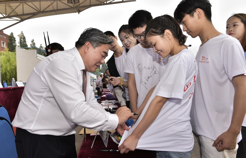 姚庆国为毕业生签名留念