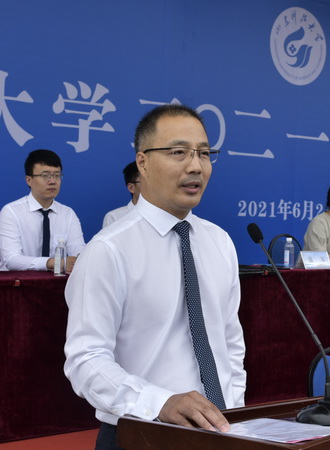 姚庆国说:“同学们即将背上行囊,踏上崭新的人生旅程,面对出门远行的你们,万语千言汇成一句话,希望你们记住‘道阻且长,行则将至,做则必成’。”他提出三点希望与大家共勉:一是希望同学们心有所信,做志存高远的筑梦人;二是希望同学们心有所向,做终身学习的追梦人;三是希望同学们心有所动,做不懈奋斗的圆梦人。