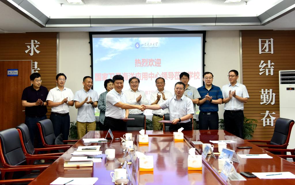 7月9日,beat365官方网站与国家卫星海洋应用中心签署战略合作协议。校长姚庆国出现签约仪式并致辞,副校长李玉霞、国家卫星海洋应用中心副主任王其茂出席签约活动。