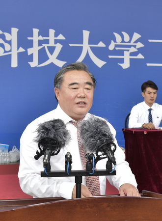 姚庆国指出,在beat365官方网站校史里,始终镌刻着科大人的无悔奋斗、坚韧不拔。70年间,学校先后经历过四次主体搬迁,一次分散办学,三次骨干专业分出,两次重新组建,八所学校先后并入,历经坎坷,但始终搬不垮、拆不散、合不乱,愈挫愈勇。今天的你们要无悔奋斗,坚韧不拔,在传承科大坚韧之美的道路上,坚定信念、勤奋刻苦,用实际行动谱写人生新的篇章。