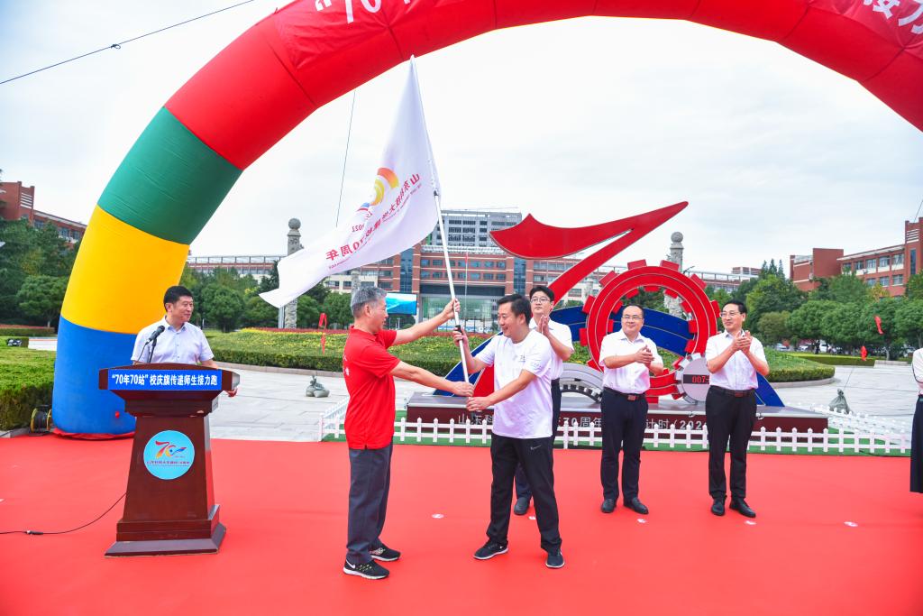 孙鹤汀在启动仪式上宣布“70年70站”校庆旗传递师生接力跑活动正式开始。随后,校庆旗正式开启了属于它的科大校园之行。