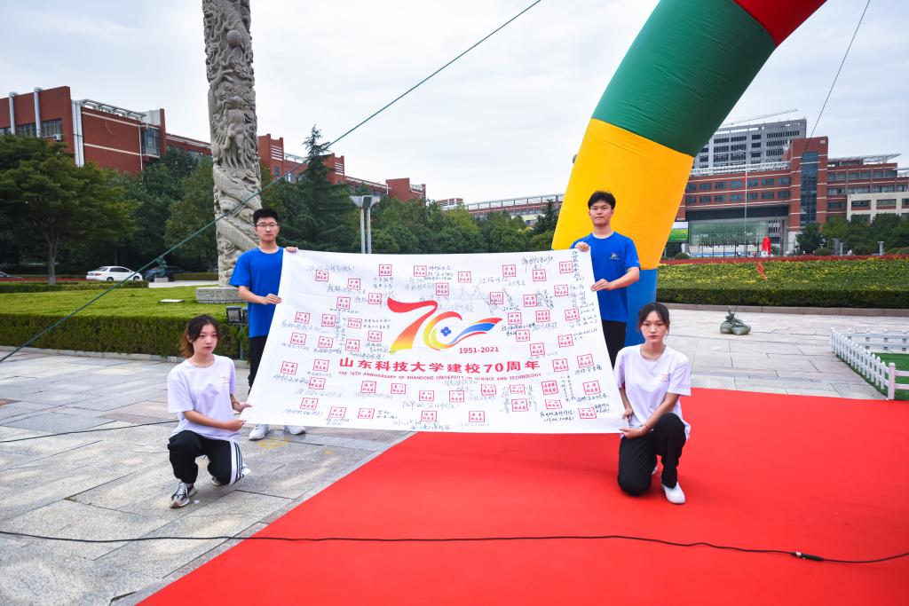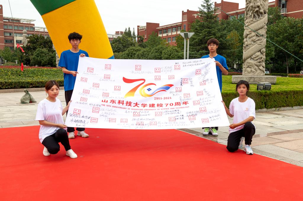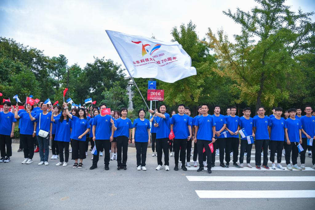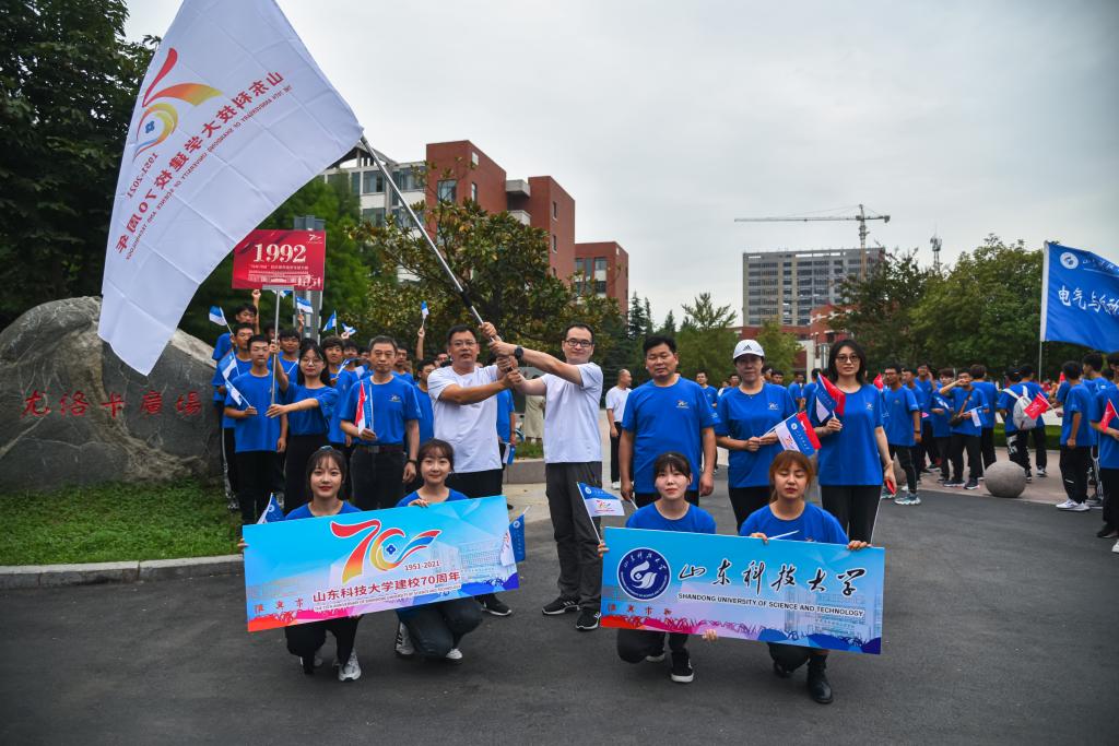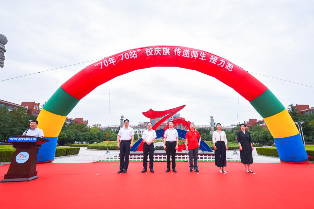 为庆祝beat365官方网站成立70周年,致敬学校70年来的发展历程,9月18日,学校在青岛校区举行“70年70站”校庆旗传递师生接力跑活动。副校长、校友总会常务副会长孙鹤汀,党委常委、宣传部部长李克周出席启动仪式。活动由校友工作办公室主任、校友总会秘书长王晓东主持。