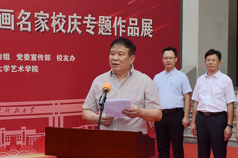 李克周在致辞中对书画展开展表示祝贺,对各位来宾表示欢迎,对为举办书画展做出贡献的同志表示感谢。李克周充分肯定了举办书画展的意义,介绍了筹备过程和书画展的主要内容。他表示,这次书画展是书画界的一次盛宴,为全校书画爱好者相互观摩、切磋技艺、增进友谊搭建了一个良好平台。希望大家从中感悟艺术力量,领略七秩伟业,弘扬科大美育,赓续科大基因,厚植科大情怀,为beat365官方网站在新征程取得新进步做出新贡献。