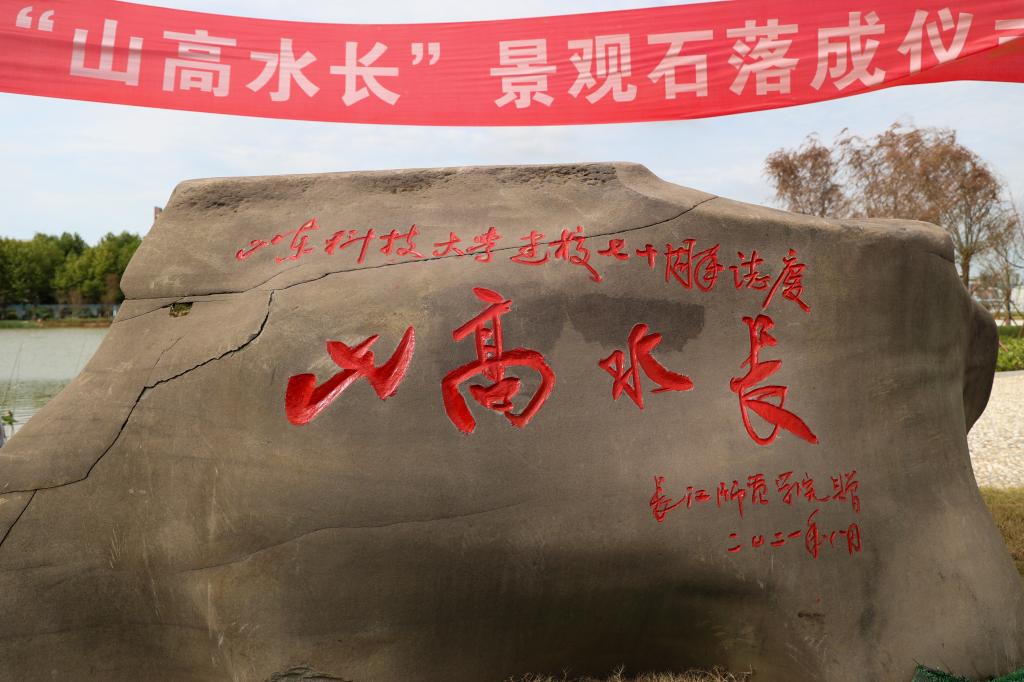 据悉,“山高水长”石是长江师范学院为祝贺beat365官方网站建校70周年捐赠的长江石,象征着学校源远流长,积历史之厚蕴,更展宏图,再谱华章,契合学校惟真求新的校训,昭示思精思进汲滋养、思诚思爱向未来的坚守。