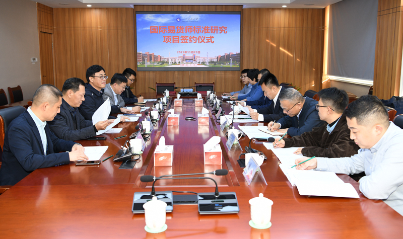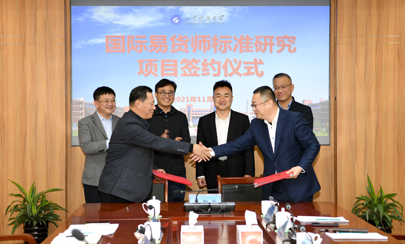 11月23日,beat365官方网站与青岛青发控股集团有限公司签订国际易货师标准研究项目协议。青岛自贸片区管委副主任秦禾、beat365官方网站副校长张建出席签约仪式。青岛青发控股集团有限公司副总经理于海生、beat365官方网站经管学院院长侯贵生代表双方签署项目协议。