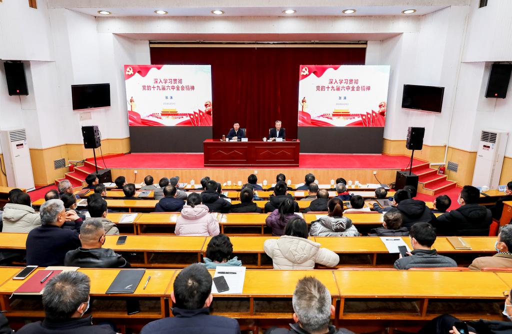12月24日,泰安市委副书记、市长张涛来到我校,向广大师生宣讲党的十九届六中全会精神。宣讲会由校党委副书记兼泰安校区党委书记、管委主任王少鹏主持。