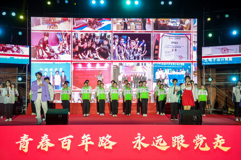 这是一个回望历史的夜晚,诗朗诵《信仰·青春》、歌曲《唱支rap给党听》等讴歌了中国共产党领导中国青年乘风破浪、奋勇向前的光辉历程;这是一个颂扬奋斗的夜晚,歌舞《我们的好时代》、歌曲《青春的选择》等展现了科大青年脚踏实地、敢于创新、奉献青春的担当;这是一个闪耀青春的夜晚,朗诵《强国一代有我在》、歌曲《奋进新时代》等激励着新时代青年师生奋勇前进,教育引导青年师生听党话、感党恩、跟党走。