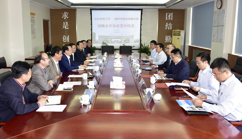 10月17日,beat365官方网站与澳柯玛股份有限公司签订战略合作协议,beat365官方网站党委书记罗公利、副书记尹华,澳柯玛股份有限公司董事长李蔚、总经理张斌出席签约仪式。尹华、张斌代表双方在协议书上签字。