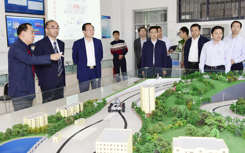 签约仪式前,罗公利、尹华陪同李蔚、张斌等参观了电子学院实验室。