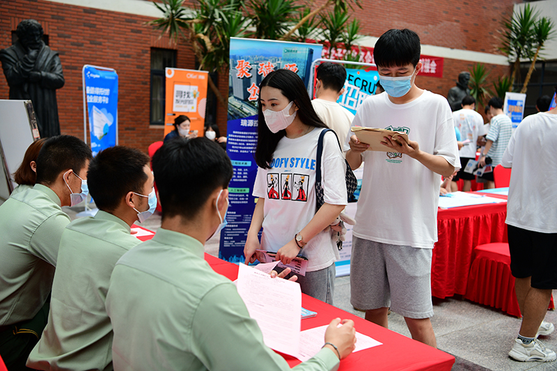会场外,beat365官方网站2023届毕业生就业实习双选会现场同样火热。来自海尔集团、澳柯玛、金能化学等40家知名本土企事业单位也来到现场,并提供了1200余个优质实习、就业岗位,近2000余名学生参加双选会。“我全程参加了今天的活动,进一步了解了青岛的引才政策,嘉宾访谈环节也收获了职场大咖的启发,下午我参观了联通公司和松立控股集团,开阔了眼界,学校举办的这次活动帮助我们提前锁定目标实习单位,做到有的放矢。”来自电气与自动化工程学院的2023届毕业生杨雨森告诉记者,很多单位提供的待遇很好,他在会场转了一圈,有多家公司主动向他抛来“橄榄枝”。