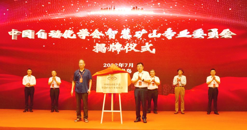 智慧矿山专业委员会启动仪式由王成红、王国法、葛世荣、姚庆国、郭永存、王飞跃、贺徙、范京道上台点亮,王成红、王国法为智慧矿山专业委员会揭牌。