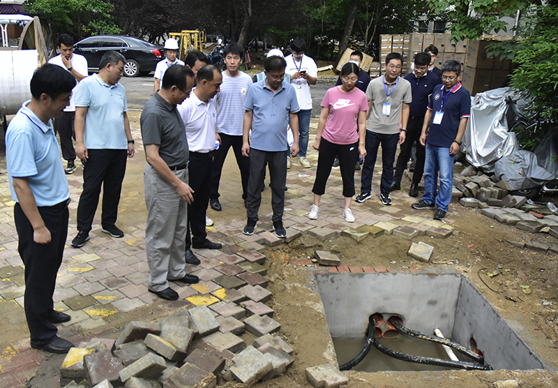 在检查现场,罗公利听取了相关部门负责人和工作人员的汇报,并与施工单位、监理单位负责人交谈。罗公利详细询问了空调安装、线路改造等工作情况,对大家克服近期连续高温、阴雨天气的环境影响,保证工期的努力给予肯定,他要求在保证安全、保证质量的前提下,大家要统筹推进,协同配合,确保学生公寓空调安装工作如期完成。