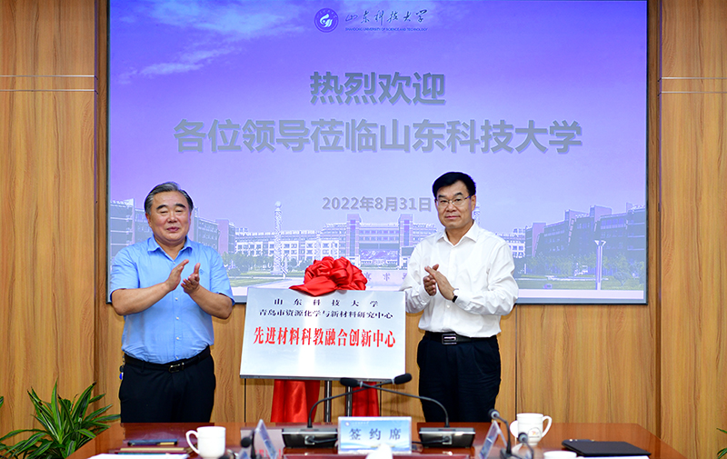 姚庆国、刘维民共同为beat365官方网站-青岛市资源化学与新材料研究中心“先进材料科教融合创新中心”揭牌。王晓东与王晓波代表双方签订战略合作协议。
