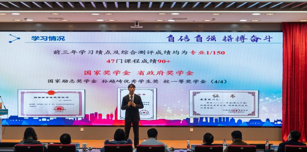 “十佳班级”的评选分为代表展示和集体展示两个环节,参加评选展示的13个班级围绕班风建设、学风建设、制度建设、文化建设、班级特色等方面展示班级情况、取得的成绩及班级建设的经验。“十大优秀学生”的评选分为自我展示、答辩题目和自由提问三个环节。现场,18位候选人通过学业成绩、科研成果、专业实践、学生工作、创新创业、志愿服务等方面展示了个人学习成长经历、取得成果和学习工作感悟。