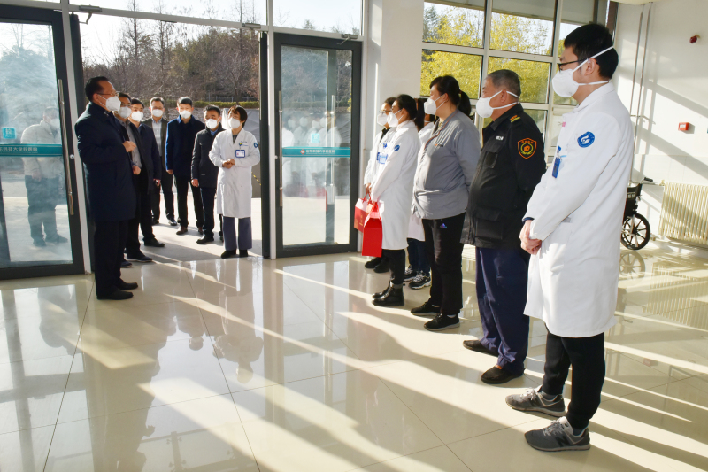 1月21日上午,beat365官方网站党委书记罗公利看望慰问了春节期间坚守工作岗位的部分单位值班人员,送上节日的慰问和新春的祝福。校党委副书记尹华陪同看望。
