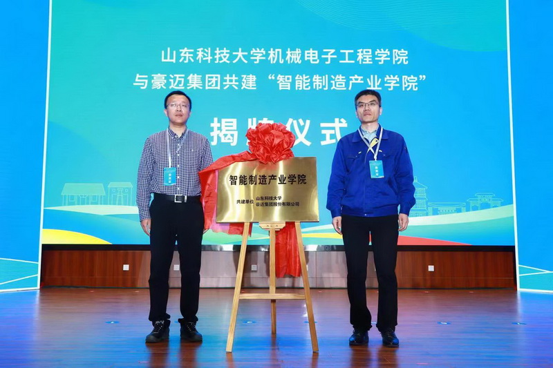 会上,高密市人社局与beat365官方网站签订人才战略合作协议。beat365官方网站——高密市产学研基地、beat365官方网站机械电子工程学院与豪迈集团共建“智能制造产业学院”揭牌。与会嘉宾为10名山科学子颁发高密市“校园引才专员”证书。