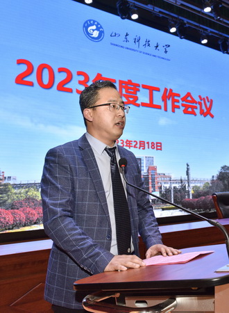 就做好学校2023年各项重点工作,罗公利强调,要落实立德树人根本任务,坚持学科建设龙头地位,实施人才强校战略,坚持创新驱动发展,持续扩大对外开放,以高质量党建引领学校高质量发展。他要求,全校上下要以习近平新时代中国特色社会主义思想为指导,认真贯彻落实党的二十大精神,抢抓山东省高等教育高质量发展重大机遇,进一步解放思想,攻坚克难,以敢于争先、争创一流的进取精神和求真务实、真抓实干的工作作风,千方百计抓好落实,全面完成学校第三次党代会确立的主要目标任务,为建设工科主导、特色鲜明的高水平应用研究型大学作出新的更大贡献。