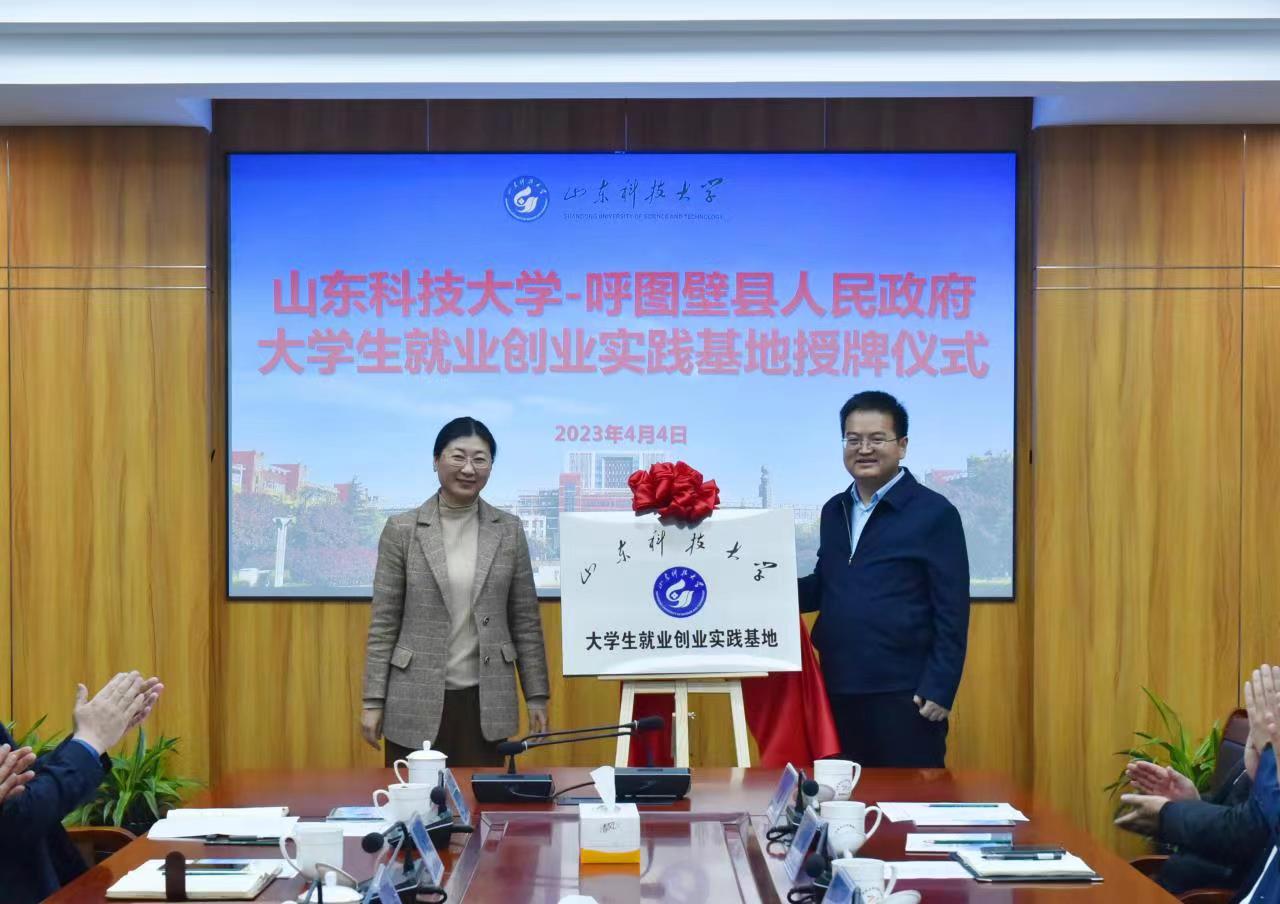 会上,科技处处长陈连军与赵江涛代表校地双方签订了战略合作协议并共同为技术转移中心揭牌,学生工作部(处)部(处)长王震与赵江涛共同为大学生就业创业基地揭牌。与会人员共同观看了学校和呼图壁县宣传片,并就技术对接等方面进行座谈交流。