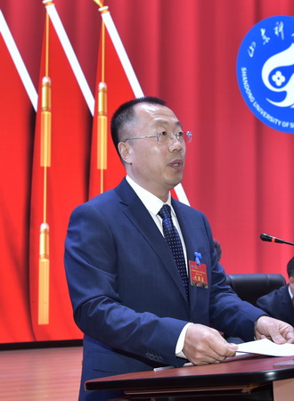 大会为三地视频会议,在青岛校区设主会场,在泰安校区、济南校区设分会场。来自全校13个代表团的359名正式代表,学校部分原党政领导,有突出贡献的中青年专家,省市人大代表、政协委员,各民主党派主要负责人,离退休人员代表等参加了会议。