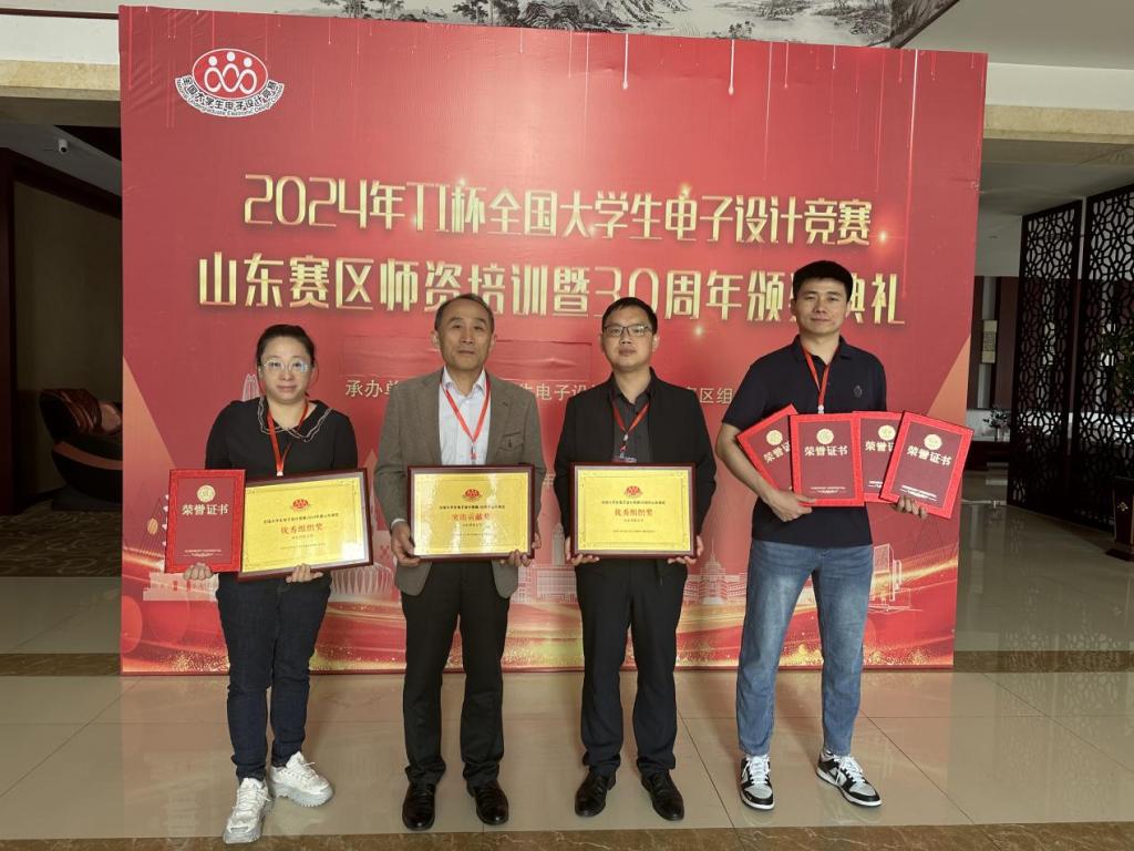4月20日,2024年TI杯全国大学生电子设计竞赛山东赛区师资培训暨30周年颁奖典礼在济宁学院举行。beat365官方网站获全国大学生电子设计竞赛30周年山东赛区突出贡献奖、30周年优秀组织奖和2023年度优秀组织单位;学校教师王立华、吕英俊、刘晓蕾、刘庆一分获30周年卓越贡献奖、30周年突出贡献奖、30周年优秀组织奖和2023年度优秀指导教师;电信学院电子信息工程专业2014级学生李凯获30周年“电赛之星”称号。学校所获荣誉数量居山东省高校第二位、省属高校首位。