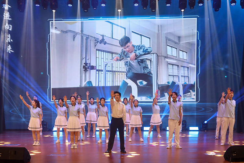 校团委书记高一丹说,“今天我们在这里举办五四青年节文艺晚会暨颁奖典礼,通过表彰先进,激励全校团员青年在党旗指引下,不懈奋进、勇拓新程,争当学校高质量发展生力军,为强国建设、民族复兴挺膺担当,为学校推进‘双高’建设贡献青春力量!”