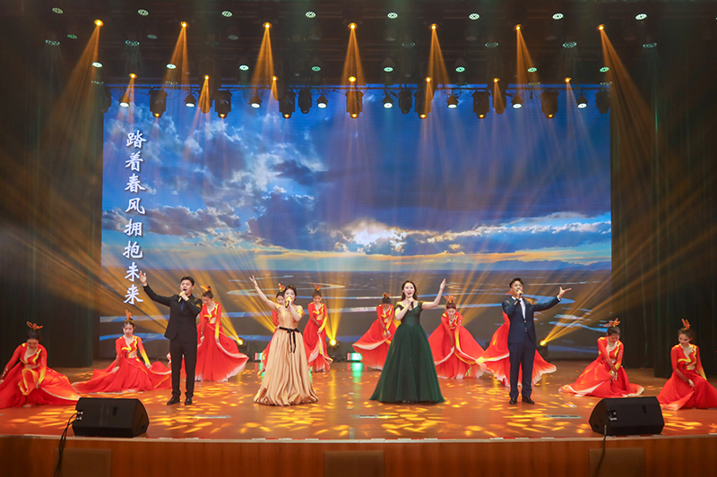 文艺晚会分为“信仰之名”“科技之光”“实践之路”“青春之美”四个篇章,以多彩歌舞、音乐剧、舞台剧、励志朗诵等节目展示了我校青年学子蓬勃向上的奋斗姿态。合唱《如愿》、歌舞《多彩科大人》,唱出信仰之力量,舞出青春之多彩;音乐剧《创新有我》,讲述科大青年不畏困难,勇攀创新高峰的拼搏故事;舞台剧《为爱出发》,呼吁青年投身实践,以小爱推动大爱;山科版《上春山》由各学院团委书记和同学们共同演绎,优美歌声唱出春日美景,动感舞蹈尽显青春绚烂;合唱朗诵《青春》,倡导吾辈青年以青春之风,助燃时代之火焰;乐声响起,演职人员纷纷走上舞台合唱《光荣啊,中国共青团》,为晚会画上完美的句号。