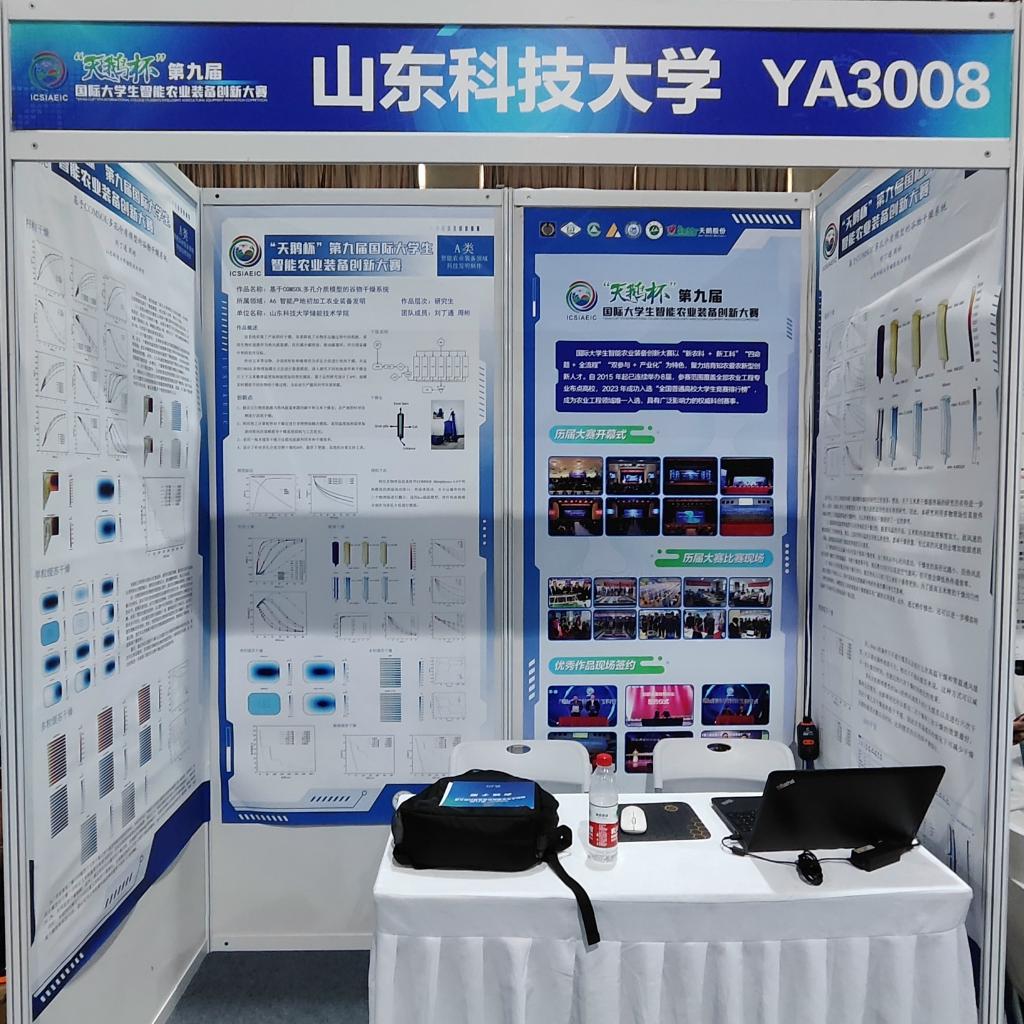5月11日至13日,“天鹅杯”第九届国际大学生智能农业装备创新大赛决赛在石河子大学举办。由储能学院教师冯太指导、研究生刘丁通和周彬共同参与完成的项目《基于COMSOL多孔介质模型的谷物干燥系统》获国家一等奖。