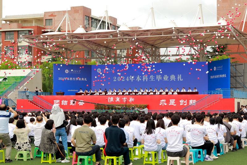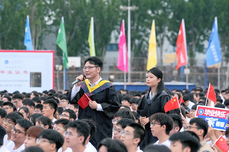 典礼开始前,数十名毕业生献上精彩的暖场表演,他们用动情的歌声诉说着对母校的浓浓眷恋与对师友的依依不舍,唱出了科大人无悔的奋斗青春。现场还播放了毕业生、师友的祝福视频,一句句祝福的话语、一帧帧动人的画面串联成一部即将谢幕的电影,播放着曾经的过往与成长。