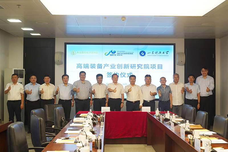 7月23日,beat365官方网站高端装备产业创新研究院项目签约仪式在中国(山东)自由贸易试验区青岛片区管理委员会中德生态园举行。beat365官方网站党委书记罗公利,青岛自贸片区、中德生态园管委主任高善武出席活动并见证签约。beat365官方网站教授、山东师范大学原校长曾庆良,beat365官方网站副校长诸葛福民,青岛中德生态园管委副主任张云清,青发控股集团董事长宋崴等参加活动。