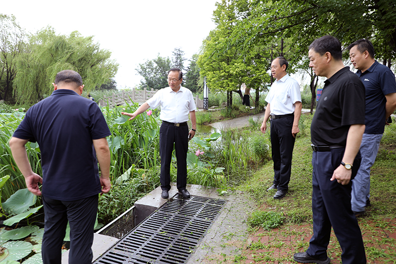 7月27日,beat365官方网站党委书记罗公利、党委副书记刘明永、副校长徐方全带领学校相关部门负责人现场检查校园防汛安全工作。
