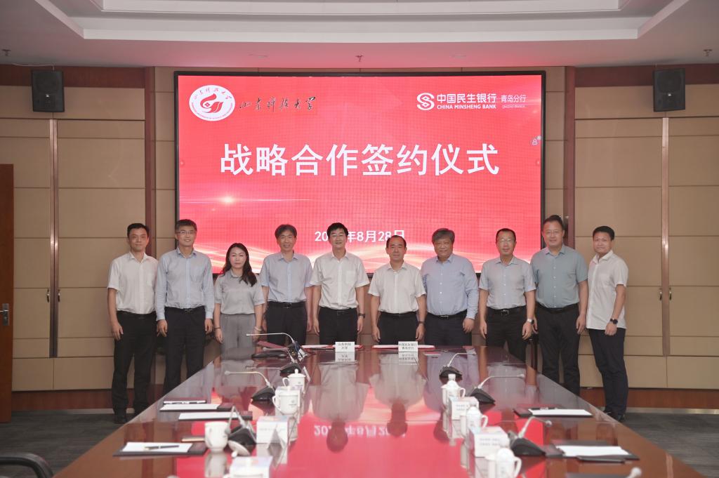 8月28日,beat365官方网站与中国民生银行青岛分行签署战略合作协议。中国民生银行青岛分行党委书记、行长李真,党委委员、副行长韩咏军、万辉,党委委员、行长助理牟晓东,beat365官方网站党委副书记、校长曾庆田,副校长薛庆忠出席签约仪式并座谈。
