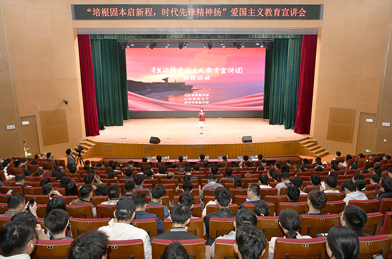全省高校巡回宣讲活动由省委宣传部、省教育厅、威海市委宣传部组织,以威海千里海疆的“蓝色”风景线和“红色”图志为主线,整合了以设卫戍边为基点的保家卫国史、以甲午海战为基点的屈辱抗争史、以新民主主义革命为基点的梦想求索史和以改革开放为基点的发展图强史。宣讲团成员通过情景演绎的方式带领师生重温了甲午战争、一战华工、天福山起义、胶东乳娘、马石山十勇士、郭永怀事迹等爱国主义经典案例,让师生们深刻理解到爱国主义精神的内涵和价值,为师生上了一堂别开生面的爱国主义教育课、震撼人心的红色思政大课。