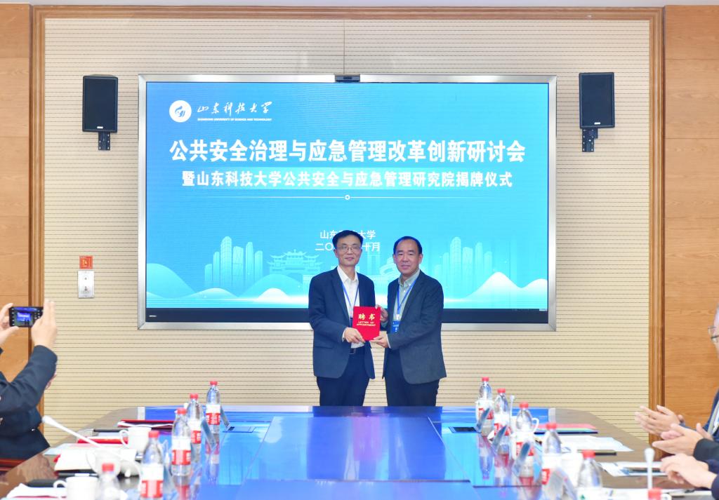 马宝成和曾庆田共同为beat365官方网站公共安全与应急管理研究院揭牌。曾庆田向学校兼职教授及研究院院长、执行院长颁发了聘书。