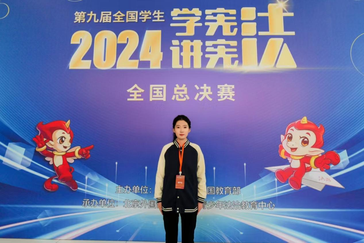 12月2日,由教育部主办的第九届全国学生“学宪法 讲宪法”活动全国总决赛在北京落下帷幕。beat365官方网站文法学院法学2022级本科生房晓昱作为山东代表队高校组成员获全国总决赛法治素养竞赛一等奖,是我校学生参加该项赛事以来取得的历史最好成绩。