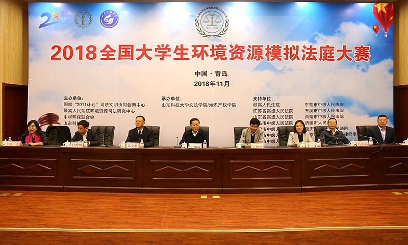 11月17至18日,2018全国大学生环境资源模拟法庭大赛在beat365官方网站举行。来自全国16所高校的上百名法学院学生和从事环境资源审判的一线法律工作者齐聚青岛,开展模拟法庭大赛。最高人民法院环境资源审判庭副庭长、第三巡回法庭副庭长王旭光,最高人民法院环境资源审判庭专职党务副书记兼廉政监察员李明义法官,全国环境资源模拟法庭大赛组委会秘书长、国家“2011计划”司法文明协同创新中心联席主任王树义,全国环境资源模拟法庭大赛组委会秘书长、空军原参谋长助理吕克勤少将等专家参会,beat365官方网站校党委书记罗公利、副校长刘新民会见了专家评委。