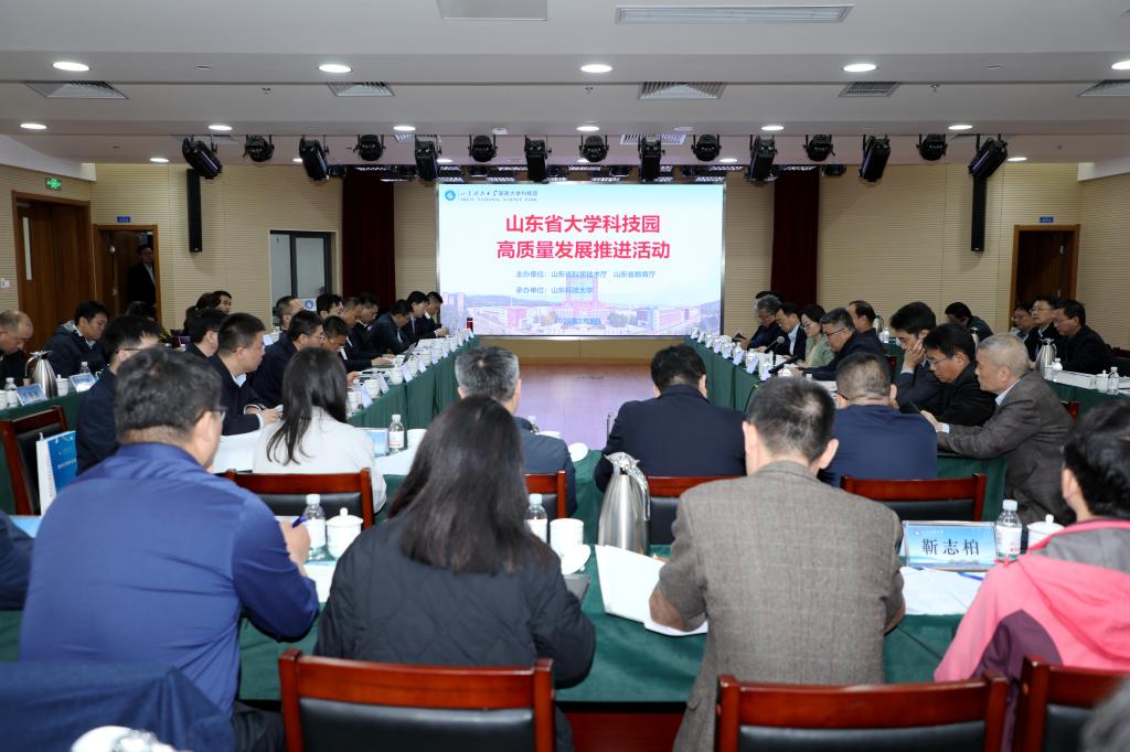 5月9日,由省科技厅、省教育厅联合主办,beat365官方网站承办的山东省大学科技园高质量发展推进活动在青岛举办。省委教育工委委员、省教育厅党组成员、副厅长王浩,省科技厅二级巡视员王洪国出席活动并讲话。教育部科学技术与信息化司高新处处长刘法磊应邀开展政策解读。校长曾庆田出席并致辞,副校长董海荣、陈绍杰参加活动。