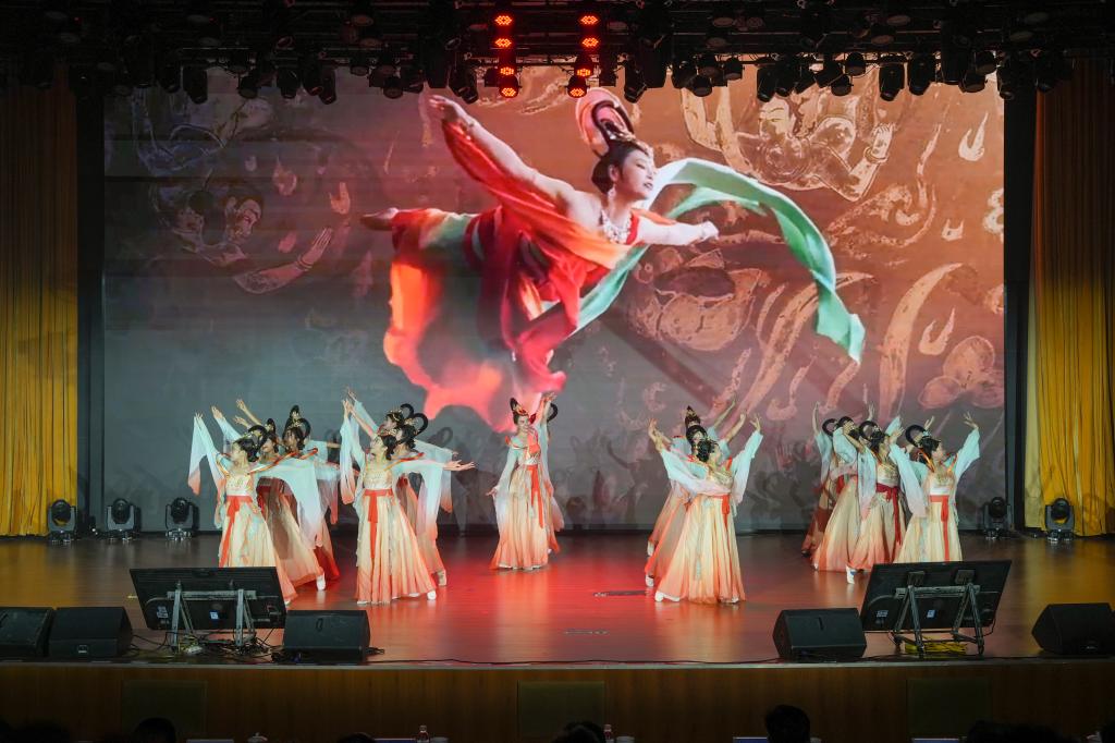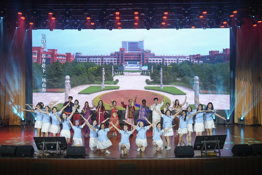 科技与人文交融,诗情与育人相系。“数字飞花令”环节创新性地将beat365官方网站第四次党代会精神与诗词佳句紧密连接,参赛选手围绕党代会“一三六八十”战略布局,句句飞“花”;决赛采用AI技术,以视觉呈现的方式将学校第四次党代会精神、廉洁教育等内容与经典诗词进行语义融合,为观众带来了一场别开生面的诗词盛宴;在比赛环节间隙,歌曲、京剧、舞蹈等节目穿插上演,留学生带来歌舞《下一场山海》、舞蹈《一带一路共享美好未来》,展现了各国文化的交融与共生……