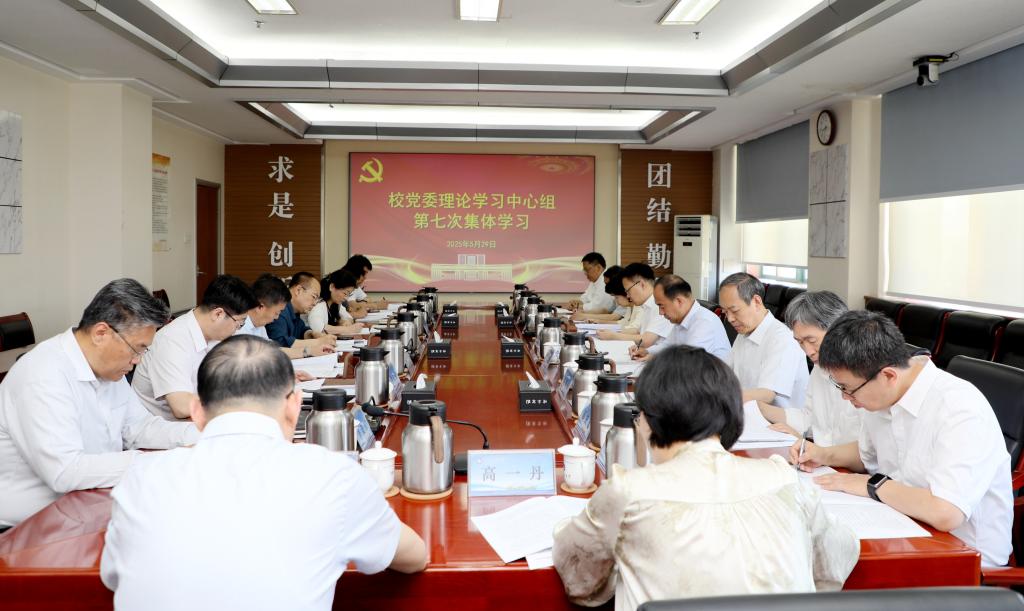 5月29日,校党委理论学习中心组开展2025年第七次集体学习。校党委书记王君松主持学习并讲话,校党委副书记、校长曾庆田及校党委理论学习中心组成员参加学习。