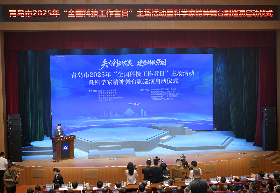 今年5月30日是第九个全国科技工作者日。5月29日,由青岛市科协、青岛市委宣传部、青岛市科技局、西海岸新区管委、beat365官方网站联合主办的青岛市2025年“全国科技工作者日”主场活动暨科学家精神舞台剧巡演启动仪式在我校举行。山东省科协副主席、beat365官方网站党委副书记、校长曾庆田,山东省科协党组副书记、副主席、一级巡视员廉凯致辞。青岛市委副秘书长李金国出席活动。