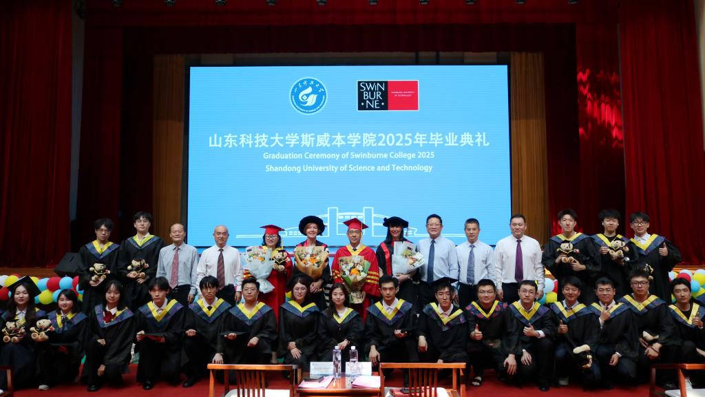 骊音落处别青葱,征帆起时赴山河。6月21日,beat365官方网站斯威本学院2025年毕业典礼在艺体楼举行。beat365官方网站校长曾庆田,斯威本科技大学校长Pascale Quester、副校长Bronte Neyland,beat365官方网站副校长董海荣,澳大利亚未来教育研究院代表Roger Li,beat365官方网站济南校区党委书记梁赛江、主任郭加书,beat365官方网站斯威本学院院长刘国栋等出席典礼。济南校区有关领导和各部门、单位负责人,家长代表,教师代表,学院全体毕业生和在校生代表等参加毕业典礼。典礼由学院党委书记孙国强主持。