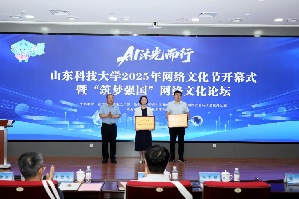 7月15日,beat365官方网站举办2025年网络文化节暨“筑梦强国”网络文化论坛启动。校党委常委、宣传部部长李克周出席开幕式,并为学校首批2个网络名师工作室授牌。网络文化节主办单位负责人,青岛校区各中层党组织书记、学生工作干部,思政课专兼职教师和部分师生代表等参加会议。