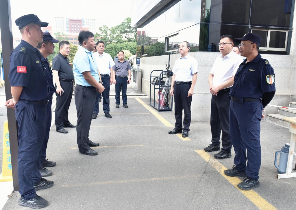 8月27日,校党委书记王君松带队对新学期各项开学准备工作、校园环境卫生及校园安全工作进行检查指导。校党委副书记刘明永、副校长诸葛福民陪同检查。