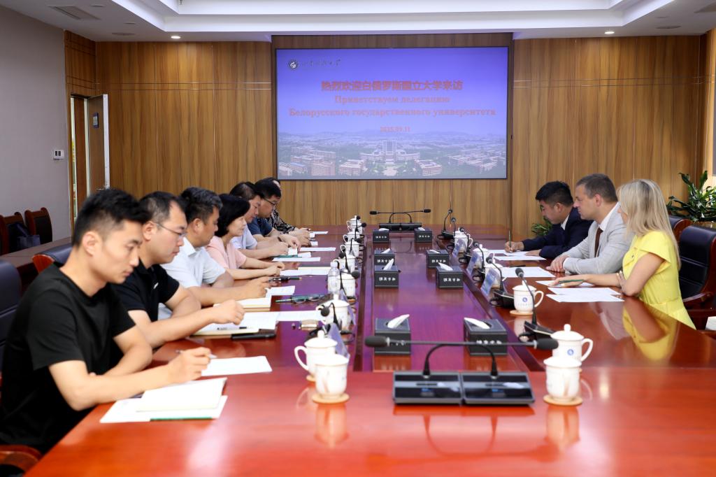 郭益灵对VictarKochyn一行来访表示欢迎,重点介绍了我校的历史沿革、办学定位、学科特色,以及近年来与白俄罗斯高校及科研院所合作的总体情况。她表示,白俄罗斯国立大学是白俄罗斯最著名的高等学府之一,历史悠久,学术实力强,期待以此次访问为契机,进一步推动双方在师生交流、人才培养、科学研究等领域的务实合作。
