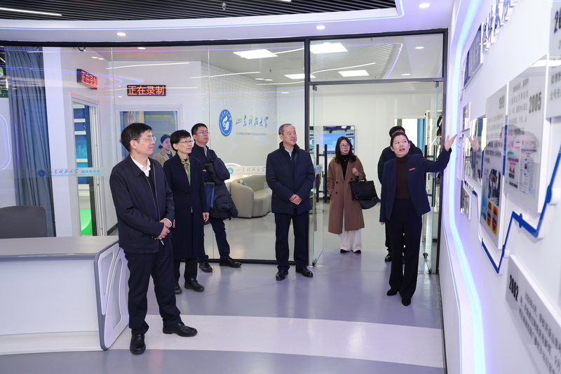 在校期间,黄兴胜一行实地调研了我校融媒体中心和图书信息中心宣传教育场所。