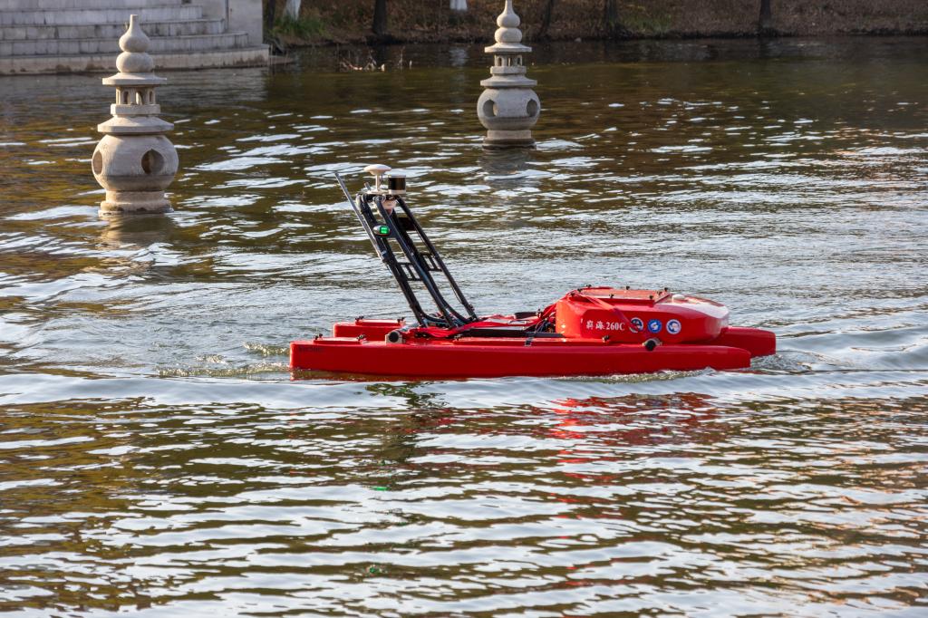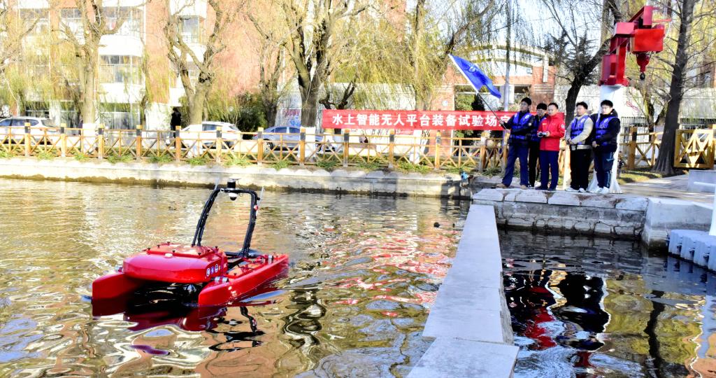 下午3点半,仪式移师学校砚湖湖畔。随着魏峥嵘按下启动键,“嵙海八号”从水上智能无人平台装备试验场缓缓驶出,船首劈开的层层荡漾的水波在湖面发出有节奏的哗啦声,仿佛提前奏响冰海远征的号角。