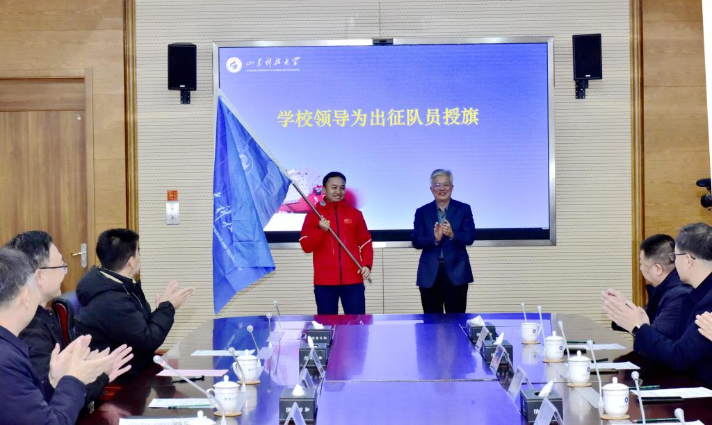 “这不是一个人的远征,而是一支队伍的奔赴。”代表团队接旗的魏峥嵘透露,为了把实验室“搬”到南极严酷的环境,20多名师生在砚湖、海上试验场的大风、大浪、低温环境下连续奋战了3个月进行模拟极地环境实验,充分验证了“嵙海八号”的能力。
