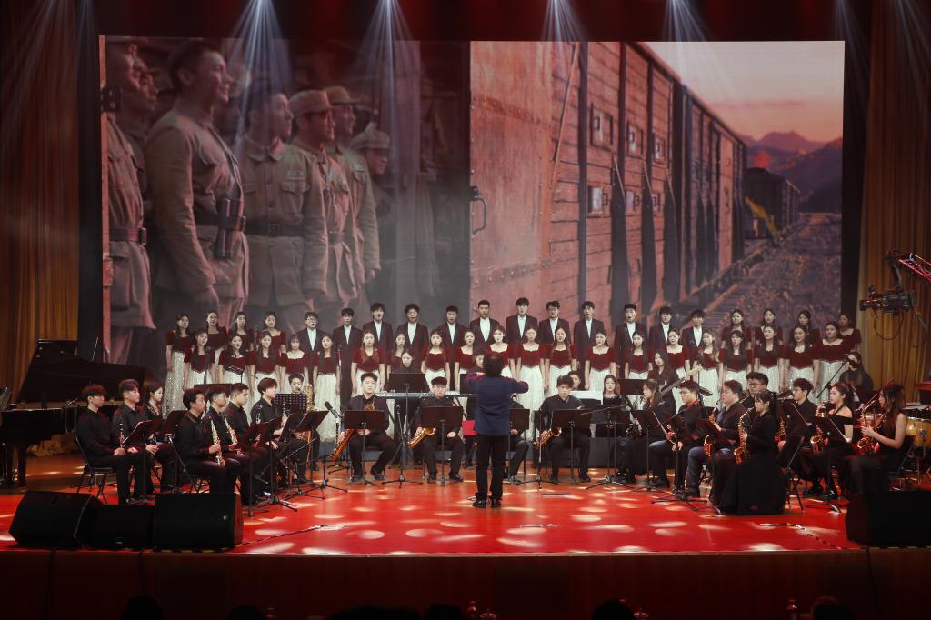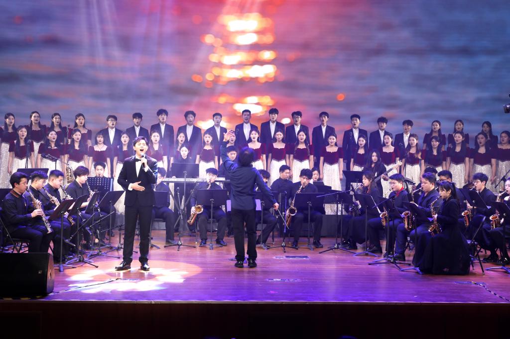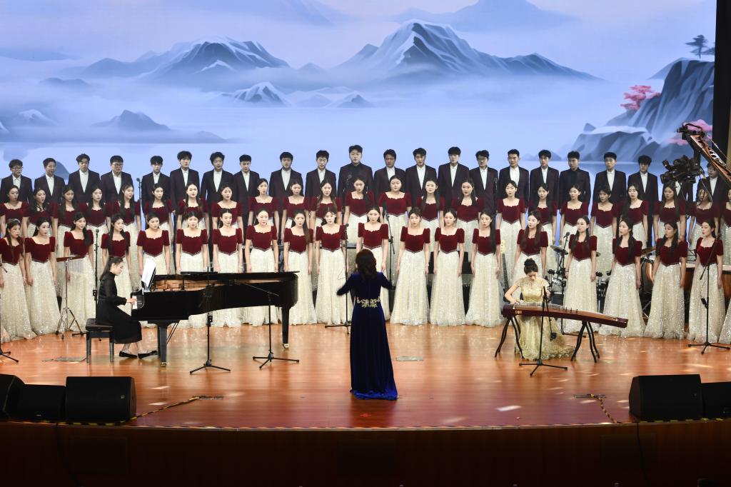 音乐会既回溯历史,也紧扣当下与未来。合唱《想见你》深情表达了母校与学子之间双向奔赴的牵挂与温情;《东方红》《唱支山歌给党听》等经典管乐作品,以饱满的情感唤起深沉的家国记忆与坚定的信仰力量;《康康舞曲》以轻快活泼的节奏点燃全场欢快气氛;《北京喜讯到边寨》则以热烈欢腾的旋律,象征学校各项事业捷报频传、硕果累累的喜人景象;歌曲《海阔天空》唱出了对理想的无悔追求与对未来的无限憧憬,引发强烈共鸣。音乐会在深情与磅礴交织的合唱《山河已无恙&爱永在》中达到情感高潮,为演出画上圆满句号。