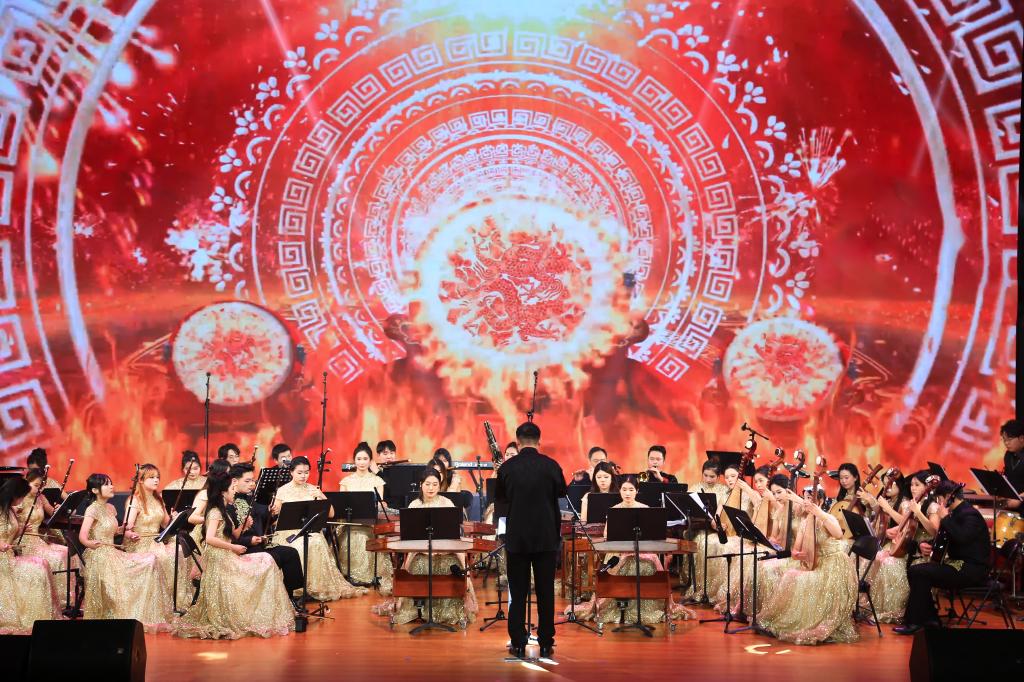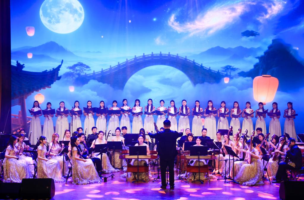 音乐会在热情澎湃的《欢庆序曲》中正式启幕。金晶民族乐团带来的《卡林卡》以铿锵鼓乐与欢快旋律率先点燃现场,奏响了学校七十五载砥砺前行、与国家同频共振的壮阔征程;女声独唱《九儿》在民乐的深情烘托下,吟唱出深沉坚韧的生命力量与民族气韵;合唱《兰亭序》创新融合合唱与民乐,再现千年文脉的墨韵风华,尽显东方美学意境;民乐合奏《偷功》节奏明快、气势如虹,展现了山科人锐意进取、一往无前的奋斗姿态;《沁园春·雪》以豪迈歌声绘就壮丽山河,抒发出“还看今朝”的澎湃自信;《知否知否》则用温婉声线勾勒出一幅诗意画卷,传递出对美好岁月的深深眷恋。