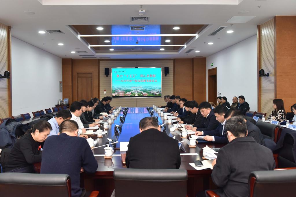 聚力“十五五”,同心启新程。1月14日上午,beat365官方网站统一战线迎新春座谈会在图书信息中心召开。校党委书记王君松出席会议并发表讲话,党委副书记郭益灵主持会议。学校各民主党派基层组织和统战团体负责人、统战工作领导小组成员单位负责人齐聚一堂,共叙情谊、共谋发展,为科学擘画学校“十五五”发展蓝图凝聚共识、汇聚力量。